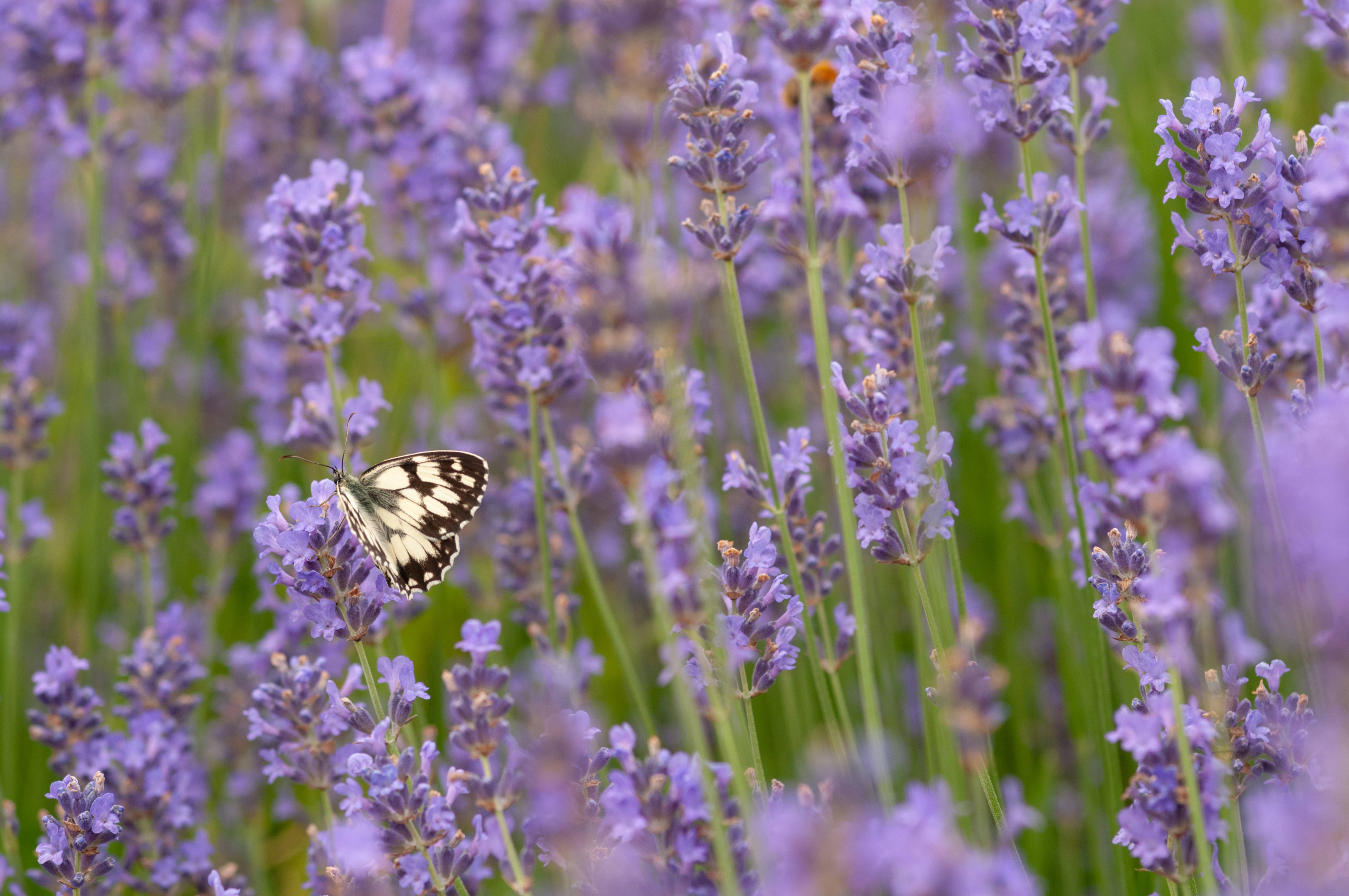 The marbled white butterfly in lavender flower field – High resolution Pattern Picture download